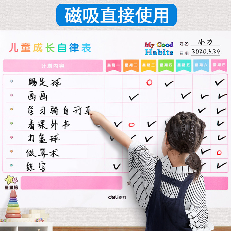 Able Child Week Program Table Daily Erasable Growth Self-discipline Table Wall Sticker Rewards Record Table Home Magnetic Punch Card Table School Schedule Elementary School Students Study Theorizer Life Good Habit Formation Table