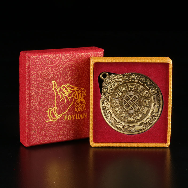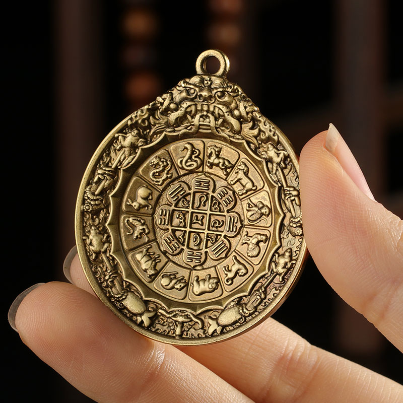 Tibetan Nine Palace Bagua Medal Necklace Pendant Pure Bronze Zodiac Sign Tibetan Pendant Manjushri Waist Plate Couple Necklace S