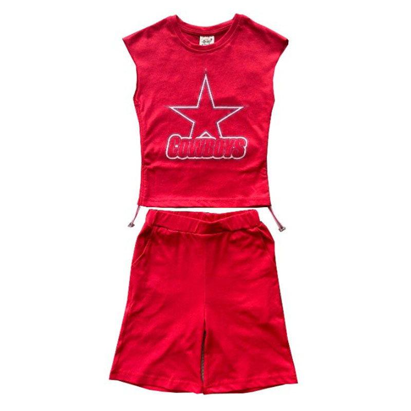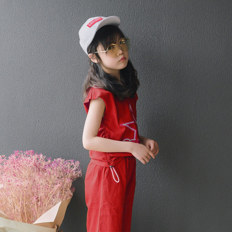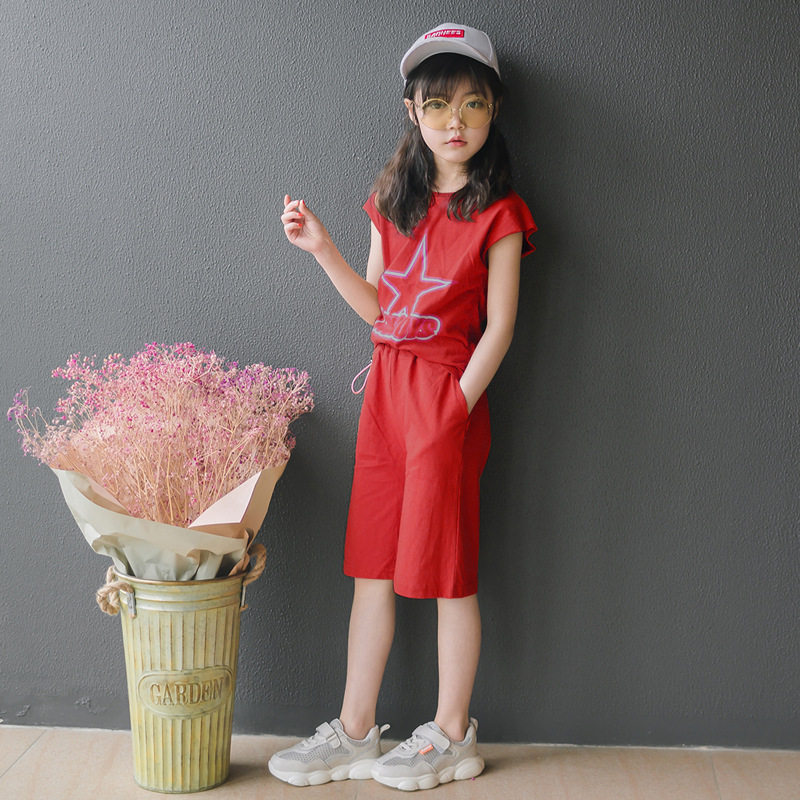 2022 girls' short-sleeved suit summer clothes children's net red ocean pie two-piece suit middle-aged children's casual five-point shorts Korean version