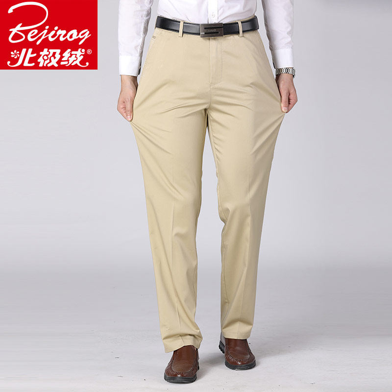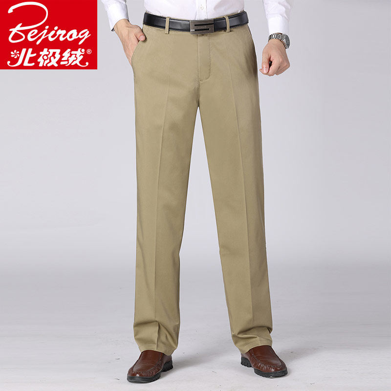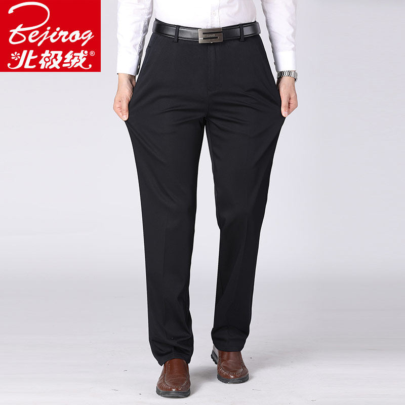 Arctic suede men's pants 2020 autumn and winter thick cotton long pants loose and high waist middle-aged Dad down dress casual pants