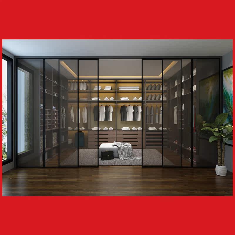 Nanjing Jiu made wood for narrow sides aluminium frame glass door wardrobe F4 star imported plate cloakroom wardrobe set to be made