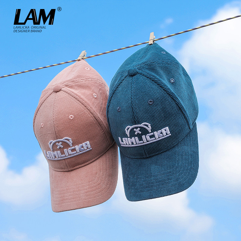 LAMLICKA self-made peaked cap suitable for men and women with big face, wide eaves, thin face, trendy brand embroidery couple hat