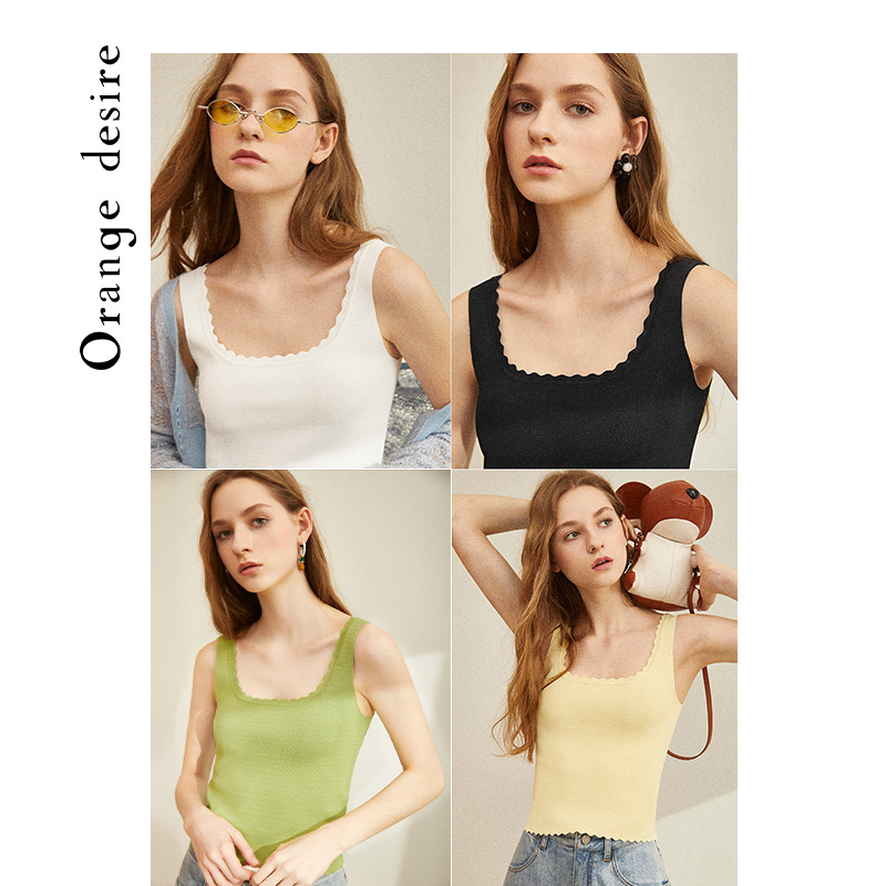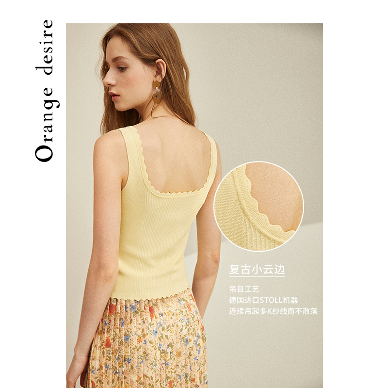 Orange Desire inside lap knit harness vest woman 2021 Summer new hem Lace Sexy Blouse