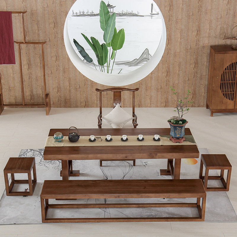 New Chinese style solid wood tea table and chair combination Kung Fu tea table solid wood tea table tea art reception table Zen leisure tea table
