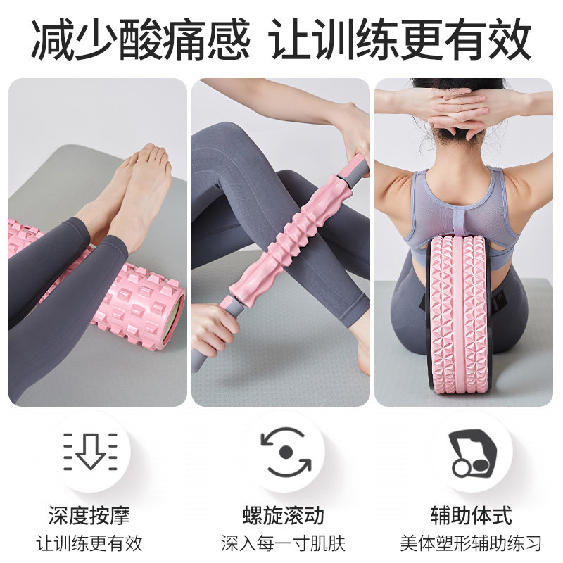 3D massage yoga wheel (pink) upgrade massage stick (fairy powder) 3D massage yoga column (fairy pink) lengthened massage with three sets of professional massage yoga wheel three sets