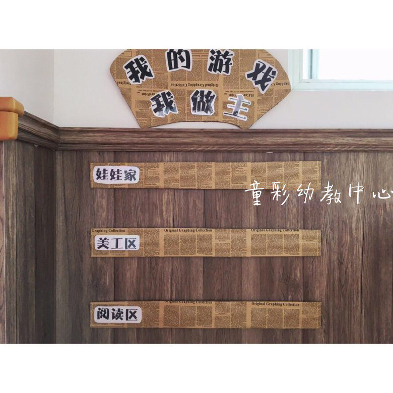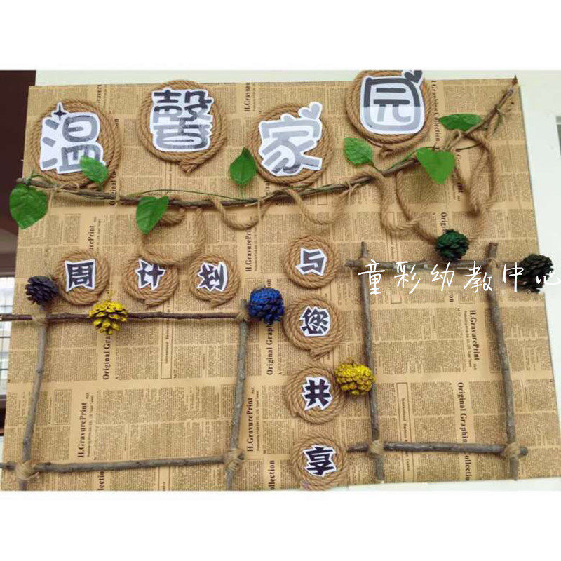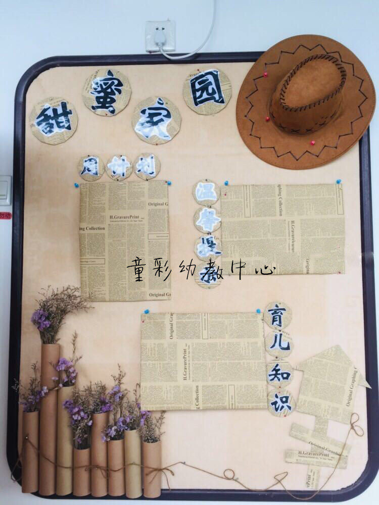 Kindergarten classroom corridor pastoral style corner retro English cowhide newspaper ring to create flowers packaging wall layout