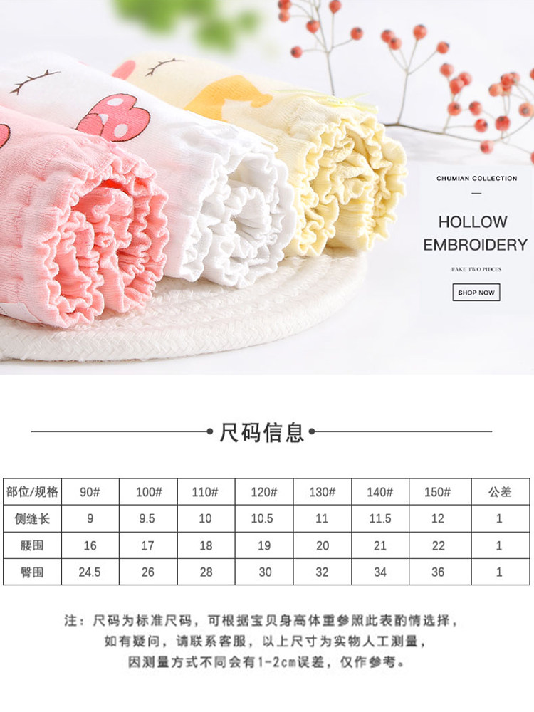 Girls panties do not clip pp cotton triangle bread pants 3-year-old female baby baby class a safety pants Little girl panties