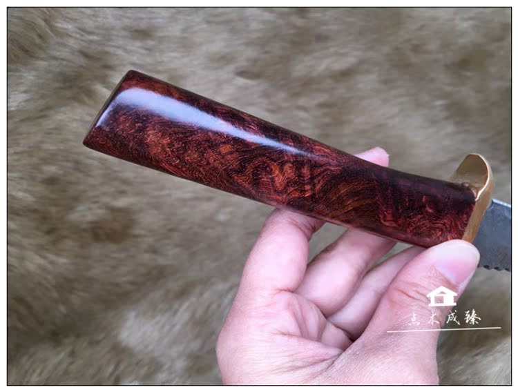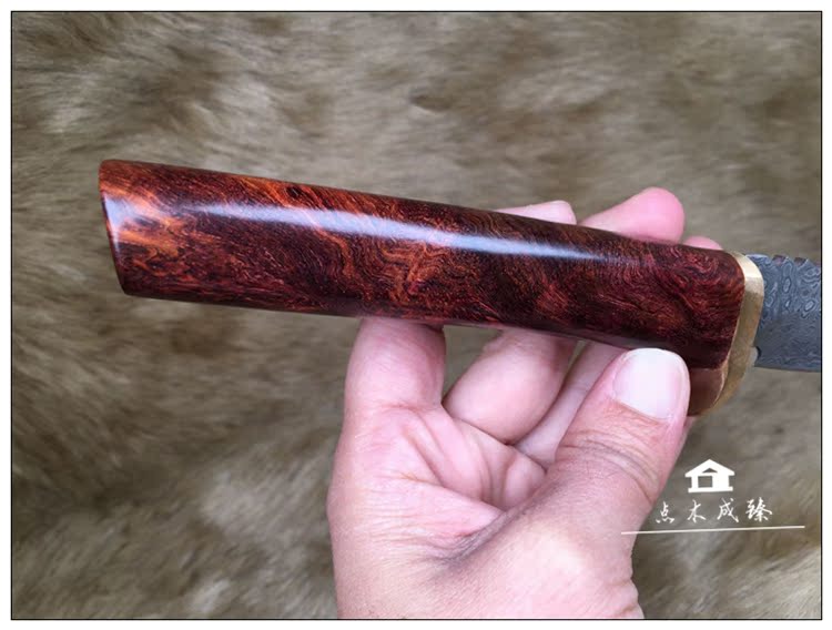 Hainan Huanghuali wood old material purple pear Pu'er tea knife special Longquan Damascus stainless steel pure handmade household