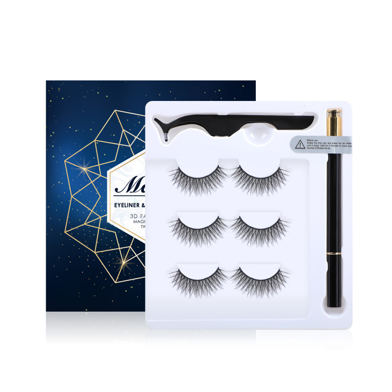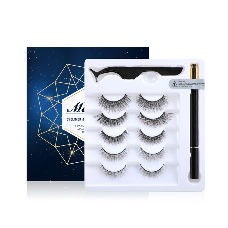 Magic self-adhesive eyeliner pen anti-fizzy and glue strong simulation 5 pairs of false eyelash suit natural vegan feminine