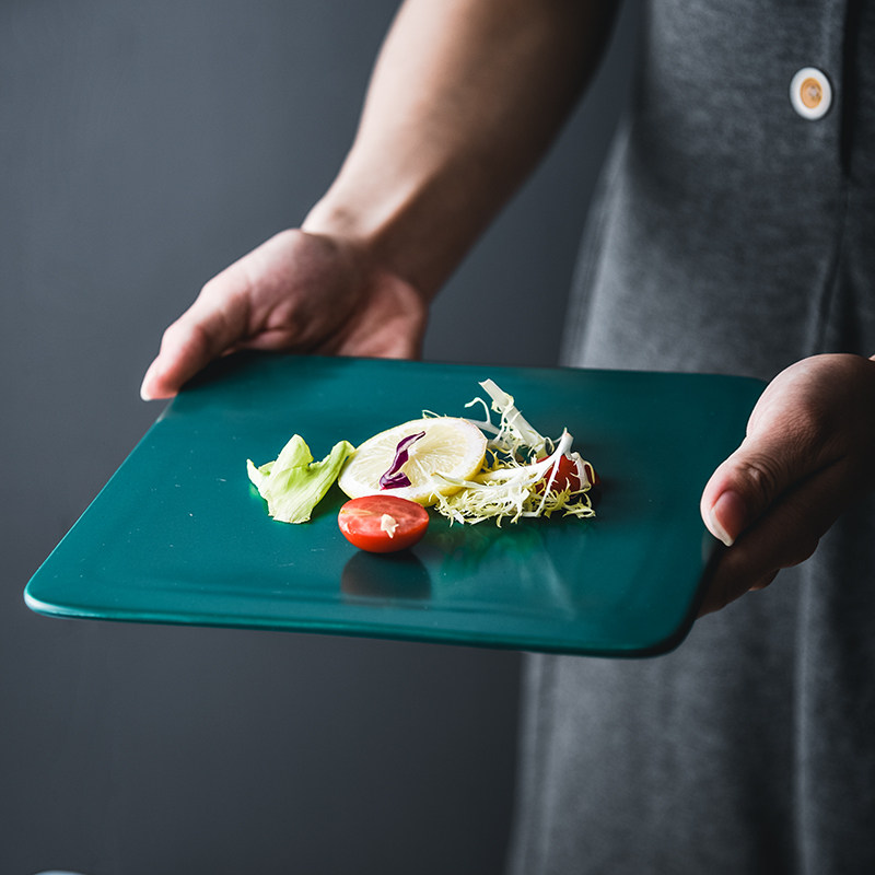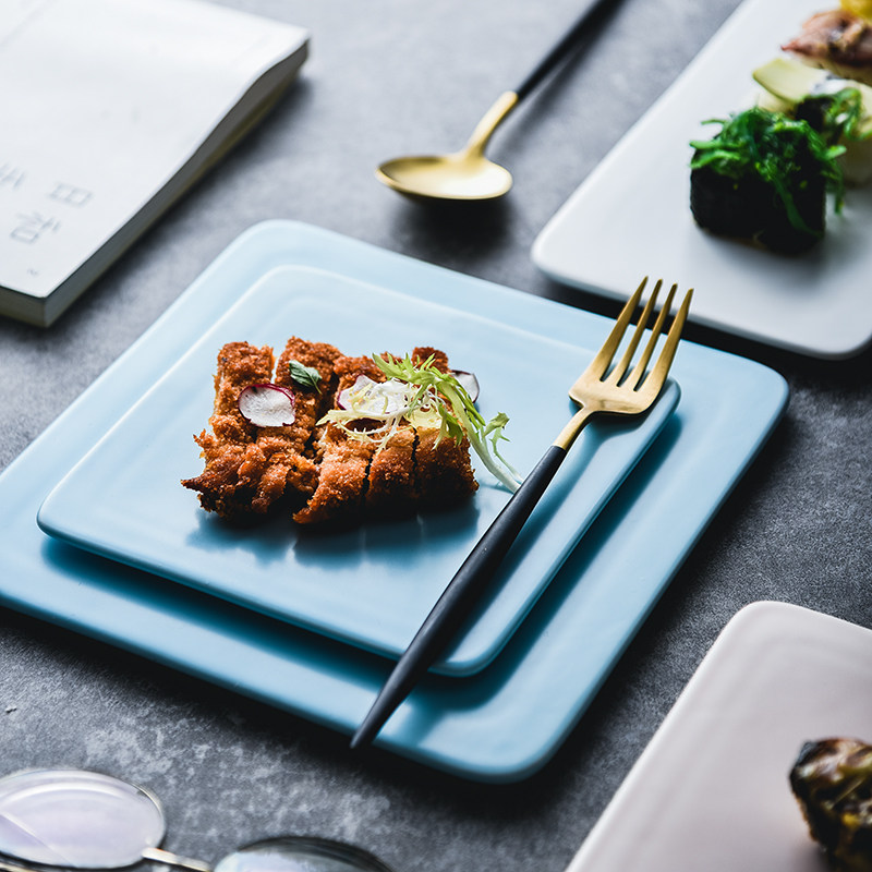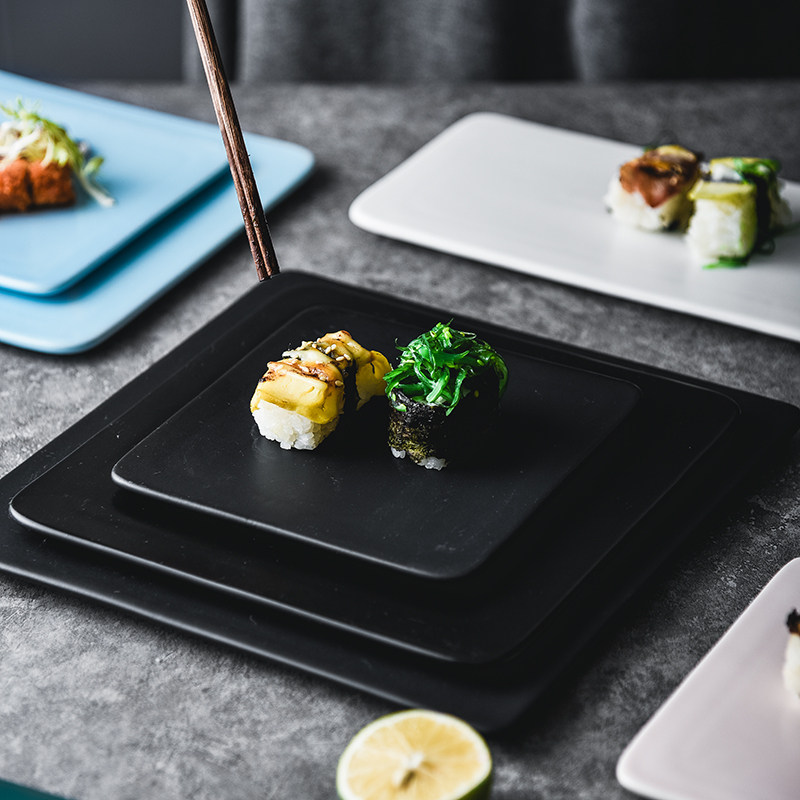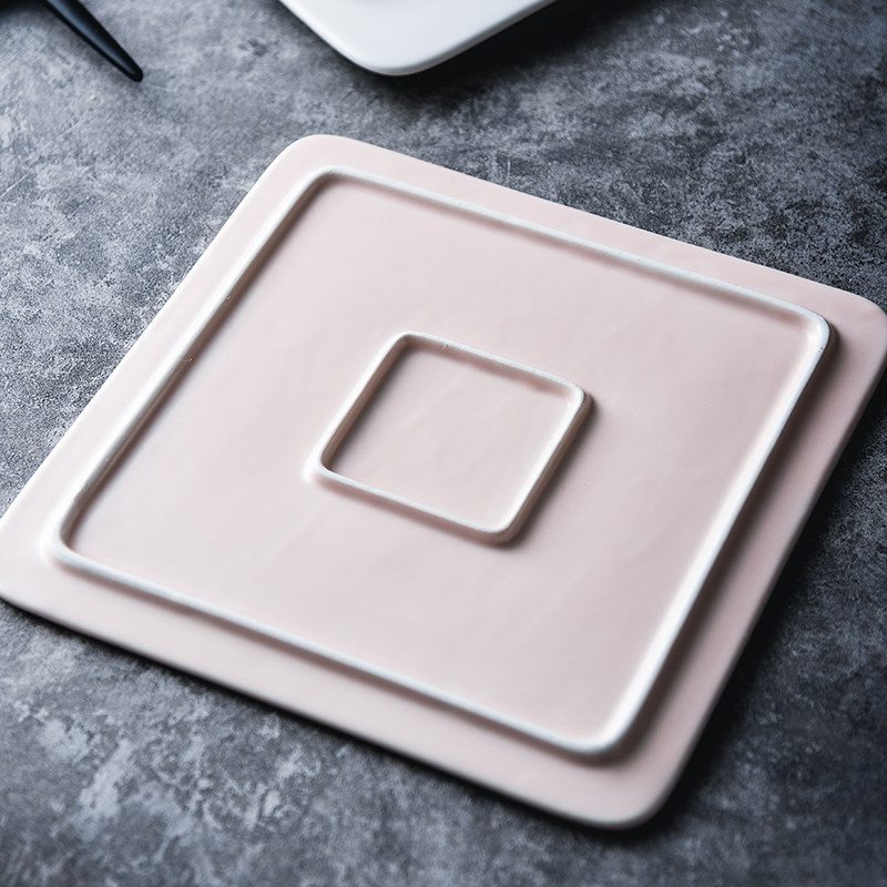 Matte Square Flat Plate Ceramic Dinner Plate Cake Plate Refreshment Plate Macaron Dessert Bread Plate Sushi Plate Western Plate