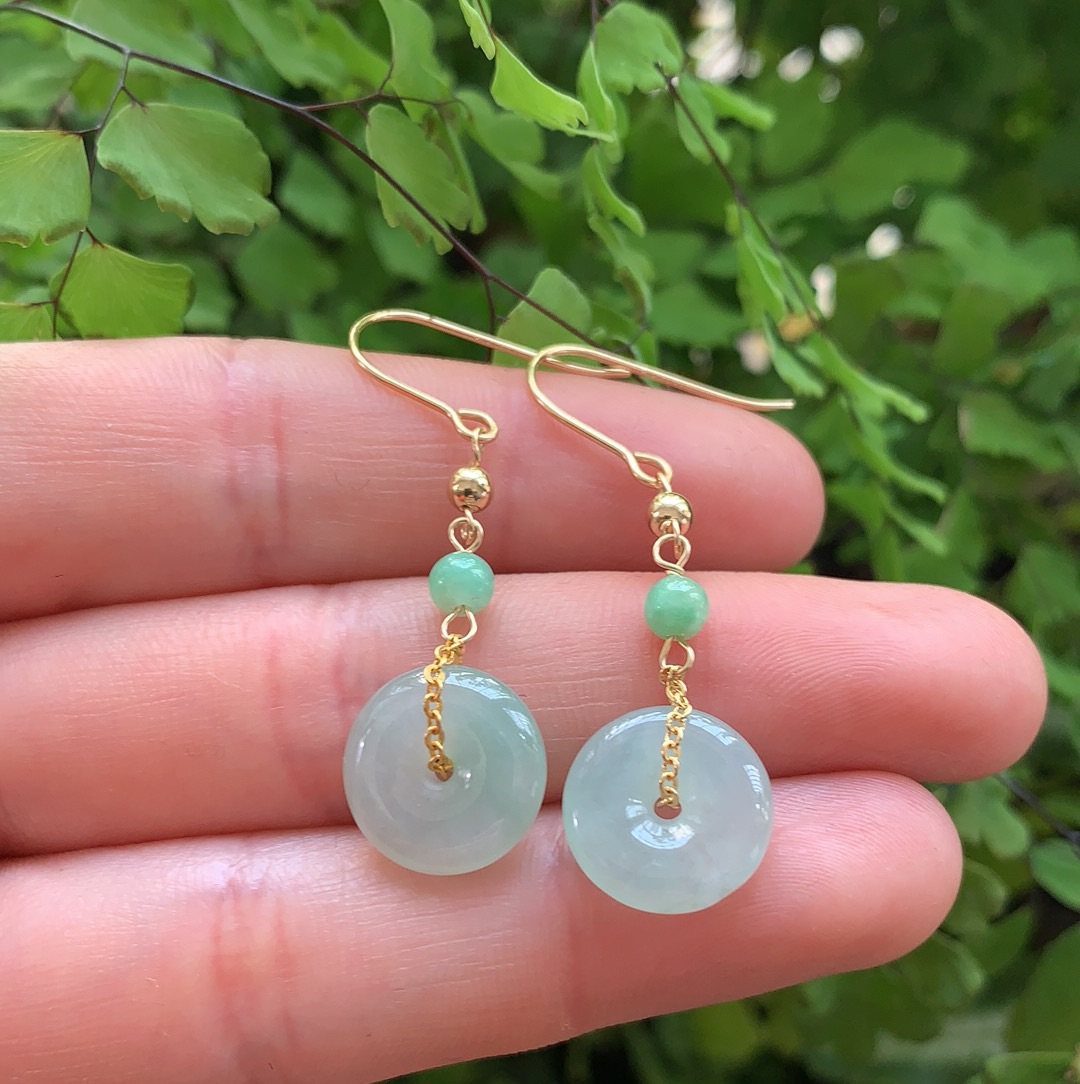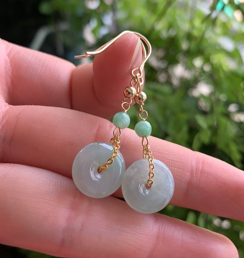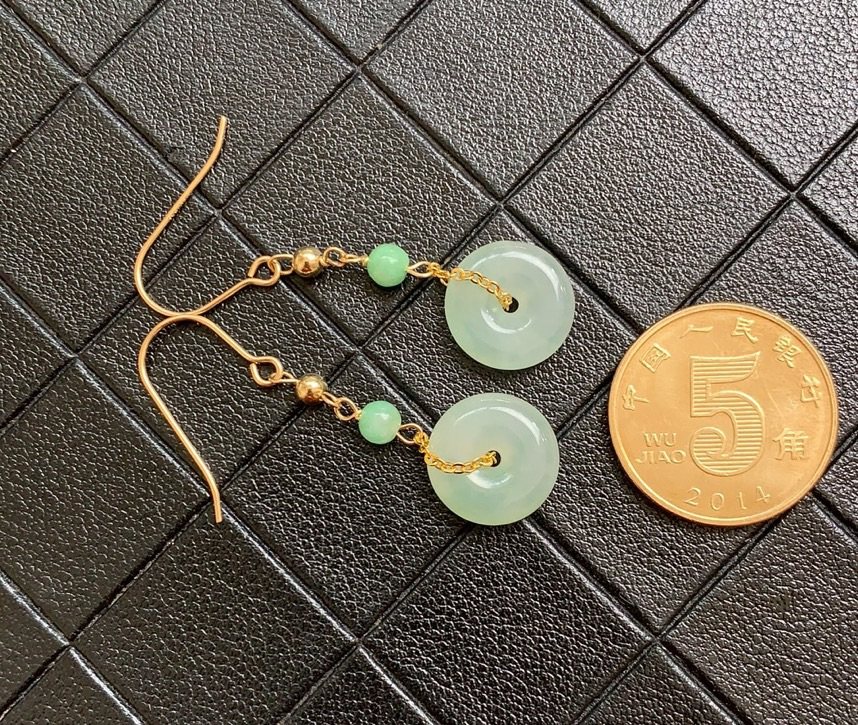 Yang Yujia Burmese Natural A Goods Jadeite 14K Gold Inlaid Ice Kind Ping An Ear Pendant Certificate New