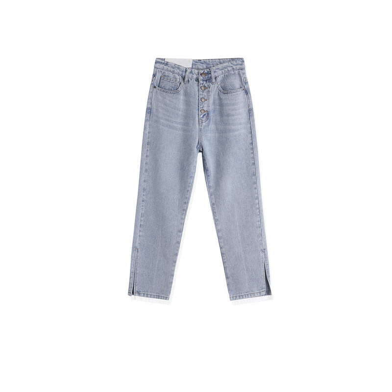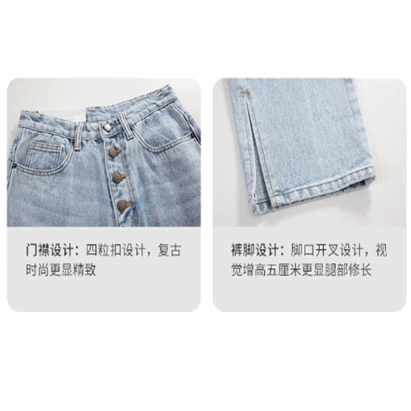 Light Colored Jeans Woman Straight Drum Loose High Waist Display Slim 100 Lap Side Open Fork Slim 90% Pants Autumn