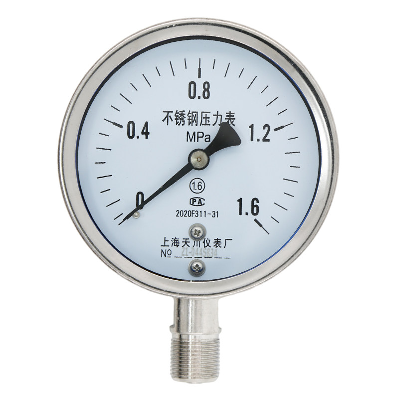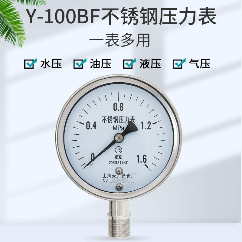 Shanghai Tianchuan Y-100BF Stainless Steel Pressure Gauge Water Pressure Gauge Barometer 1.6MPa Anti-corrosion Vacuum Negative Pressure Gauge
