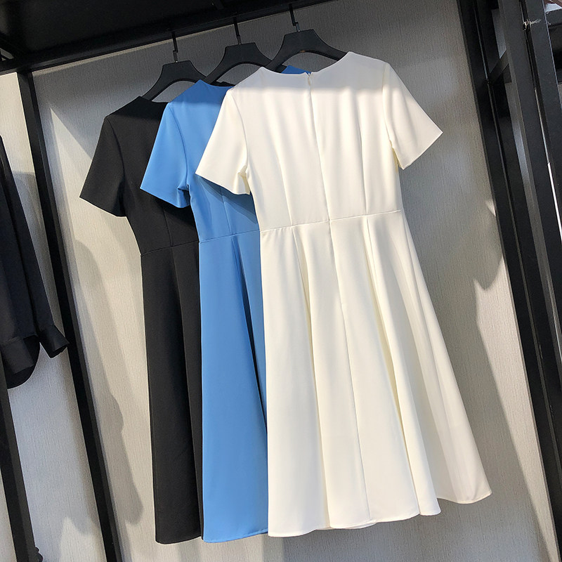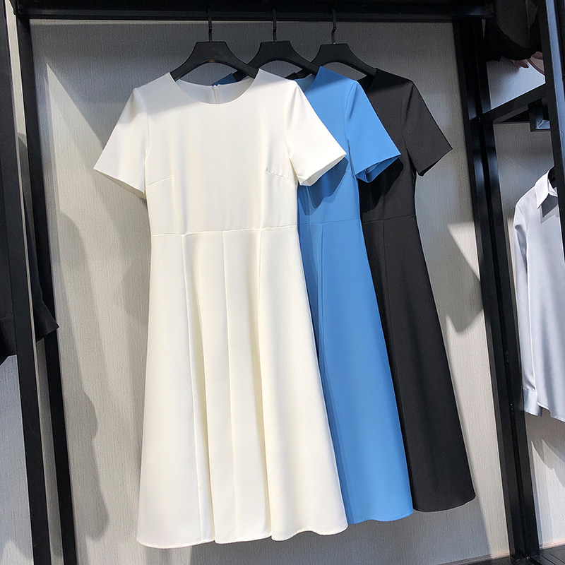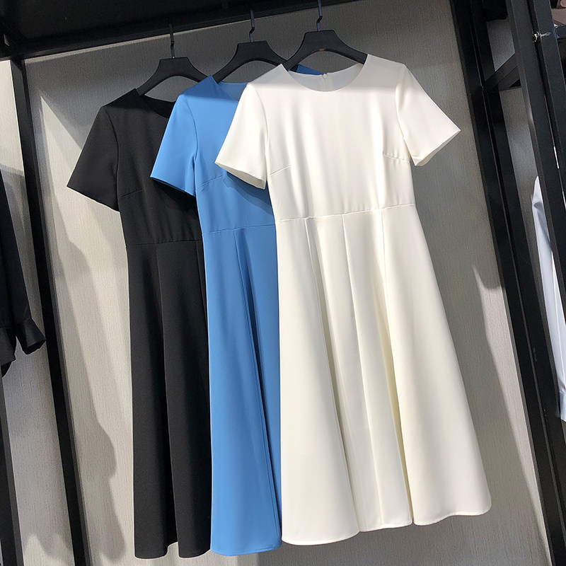 MRMW2022 summer new round-neck short-sleeved loose dress women's temperament slim and slim mid-length A-line skirt