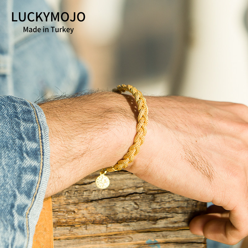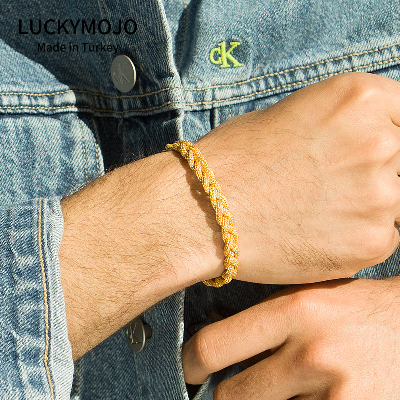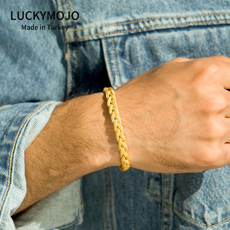 Retro golden handmade male and female pure silver small crowdsourced light extravagant luxurious superior accessories gilded bracelet hand rope This life is a gift
