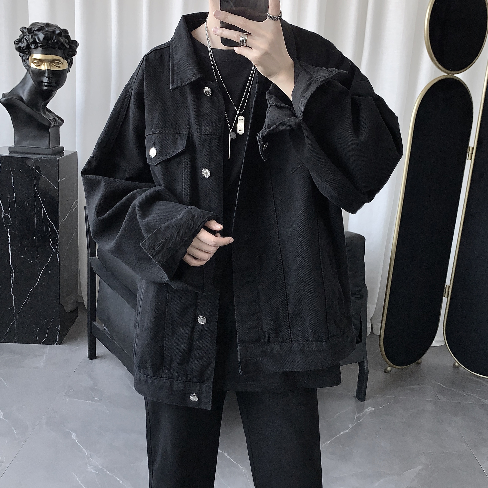 Men's 2022 new Korean style chic early spring denim jacket men's spring and autumn ruffian handsome design sense niche jacket men