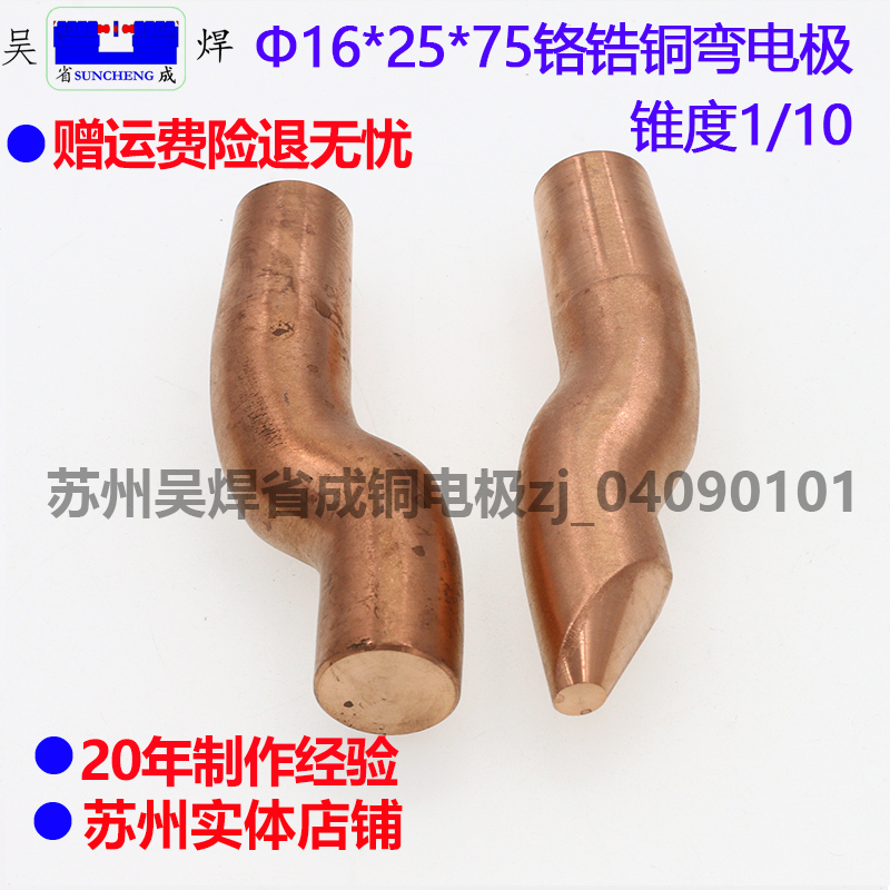 Spot welding electrode head resistance welding machine chrome zirconium copper flat bending electrode 16*25*75 Suzhou physical store