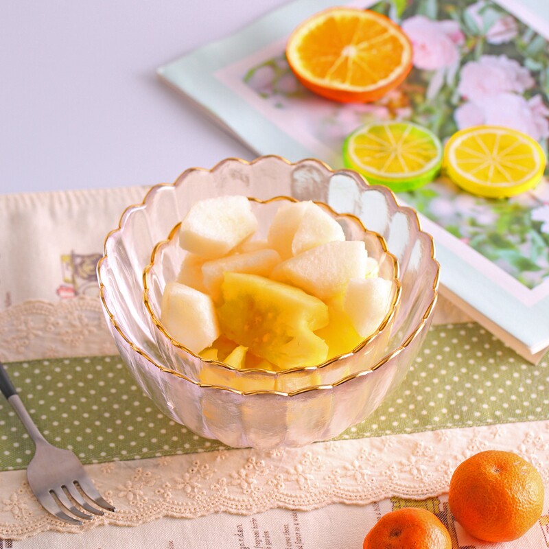 Nordic Bowls Transparent Glass Rice Bowls Home Nets Red Ins Bowls Dish Cutlery Food Salad Bowl Suit Combinations