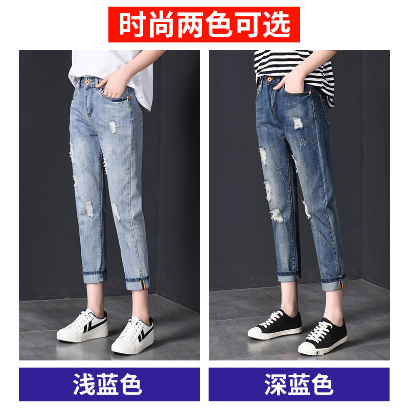 Hong Kong tide 2023 spring and autumn new style ripped jeans women's nine-point pants loose daddy pants women's high waist slimming pants