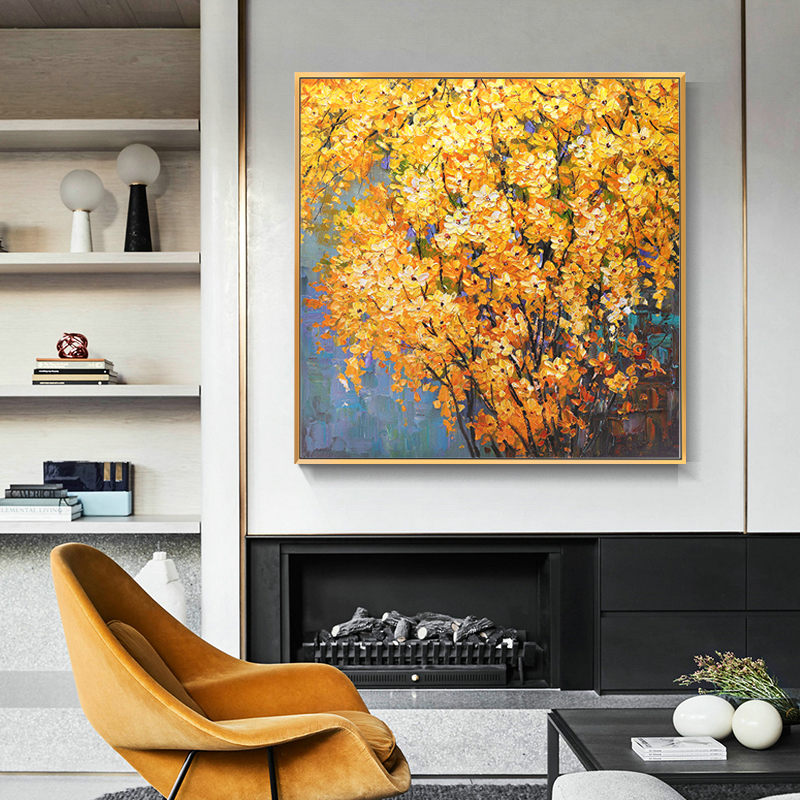 Dining Room Decoration Painting Nordic Xuanguan Mural Light Extravagant Abstract Oil Painting Yellow Art Modern Living Room Background Wall Hanging Painting