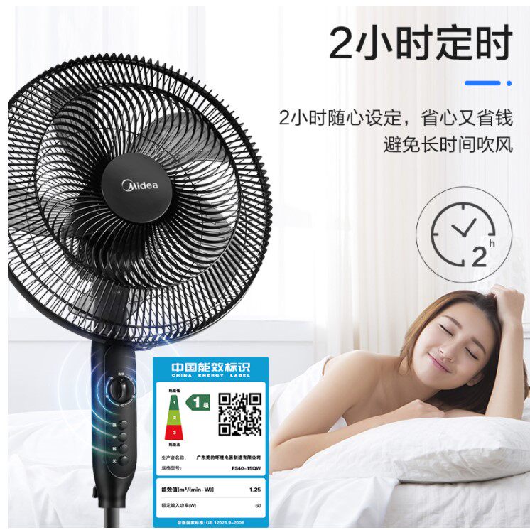 Midea electric fan FS40-15QW home desktop computer mechanical electric fan timing shaking head floor fan
