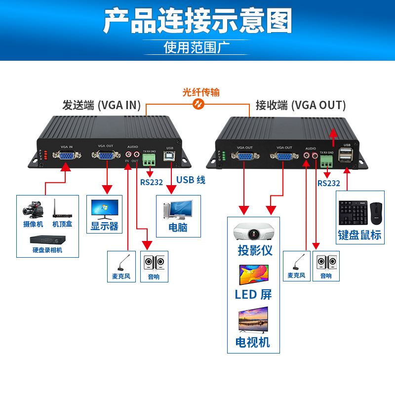 VGA+1 unidirectional audio single fiber LC (1 unit) VGA+1 channel unidirectional audio + USB keyboard and mouse single fiber LC (1 unit) Non-compressed VGA with loop out + 1 two-way audio + RS232 single fiber LC (1 unit) Non-compressed VGA with loop out + 1 way two-way audio + RS232 + USB keyboard and mouse single fiber LC (1 unit) Non-compressed VGA with loop out + 1 way two-way audio + RS232 single fiber FC (1 unit) Non-compressed VGA with loop out + 1 way two-way audio + RS232+ USB keyboard and mouse single fiber FC (1 unit)