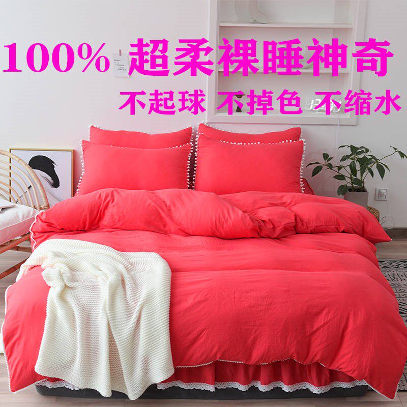 Pink quilt cover single-piece thin cotton thin section washed cotton solid color student dormitory 1 5m1 8 2m upper and lower bunk quilt cover