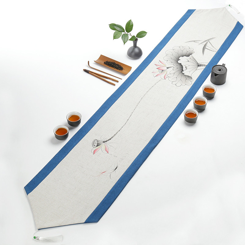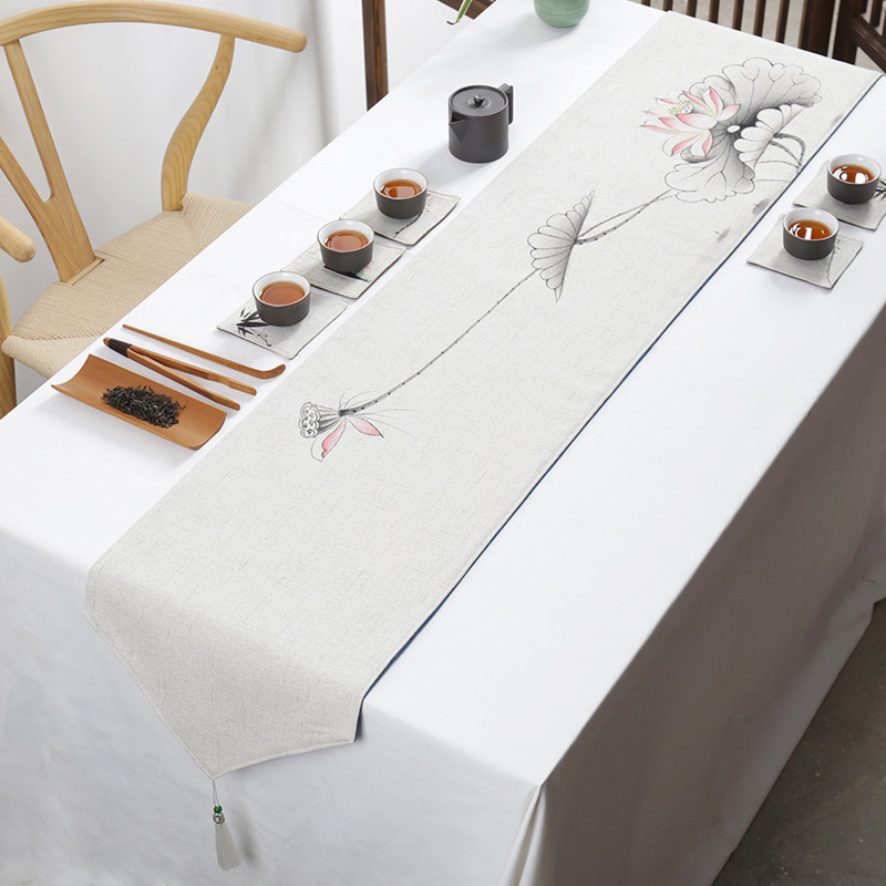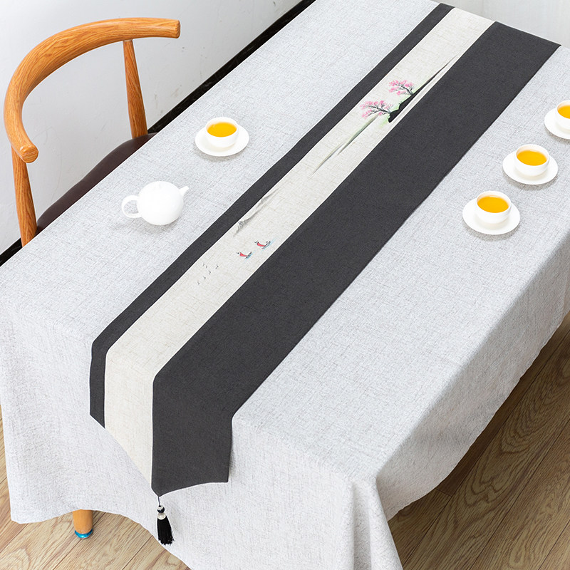 Modern minimalist retro table flag Chinese style Zen tea table cloth tea flag tea mat table decoration cloth strip custom cotton linen