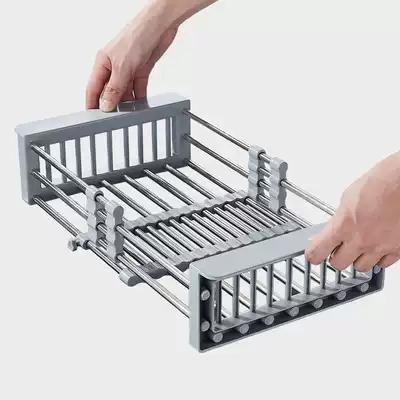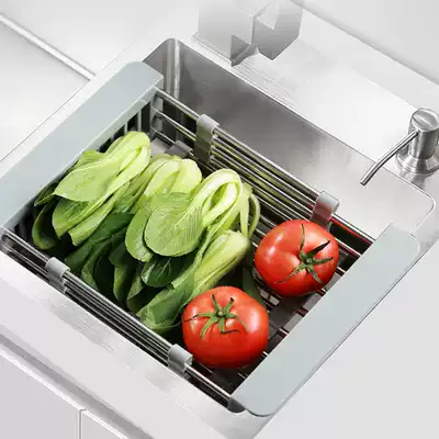 Kitchen sink drain basket retractable drain rack stainless steel pool sink tableware filter dry water basket