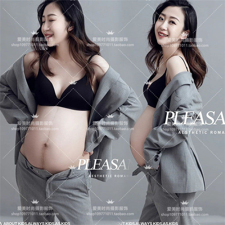 New fashion gray maternity photo costume studio photography photo photo belly mommy suit suit Hong Kong version suit