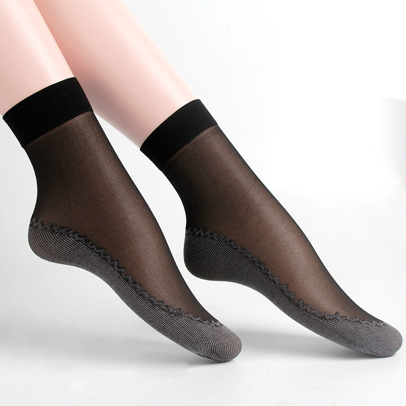 Romantic Bag Core Silk Short Socks 10 Double Summer Wets Women Sox in Black Flesh Color Abrasion Resistant Anti Slip Spring Cotton Bottom Silk Socks