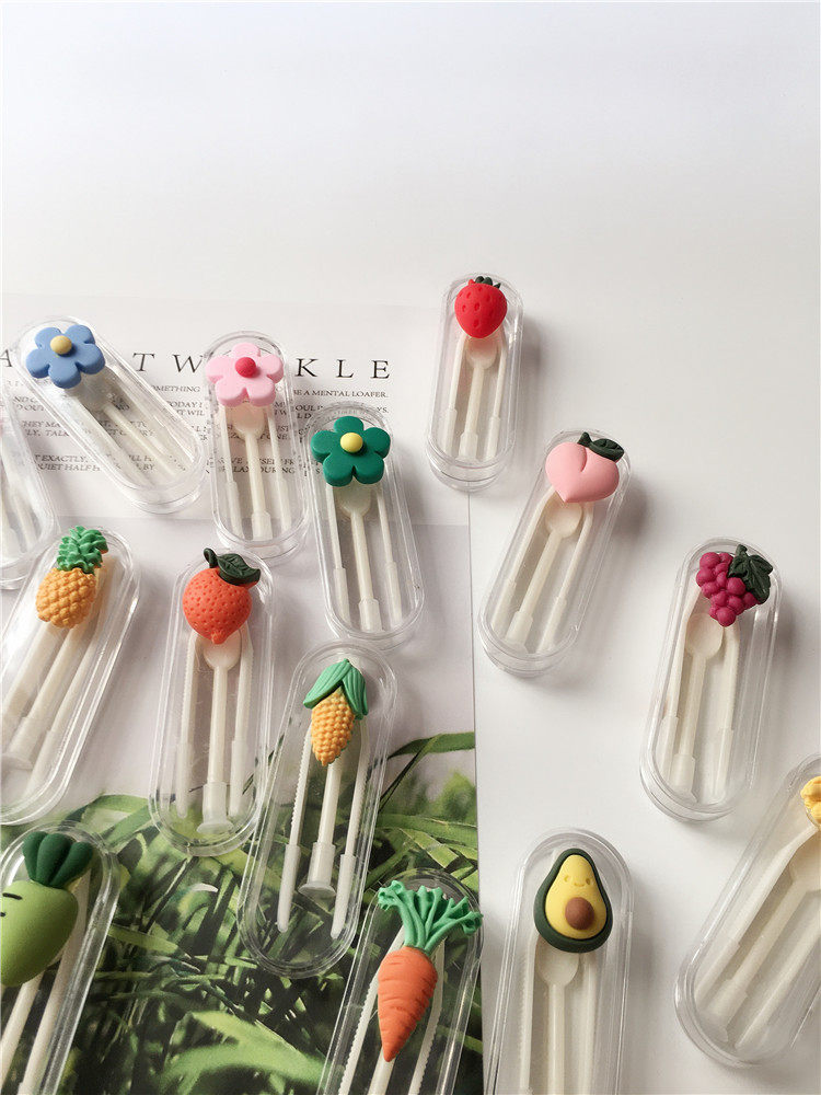 Cute invisible myopia glasses case ins girl pupil box silicone sleeve clip suction stick tweezers accessories portable
