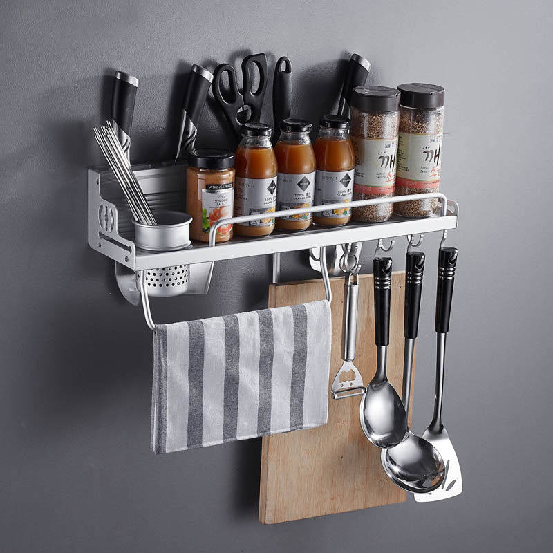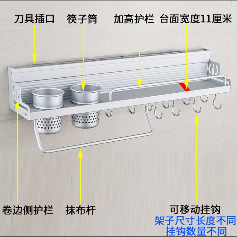 (thickened)space aluminum kitchen shelf Wall-mounted non-perforated storage knife holder Kitchenware supplies seasoning tank shelf