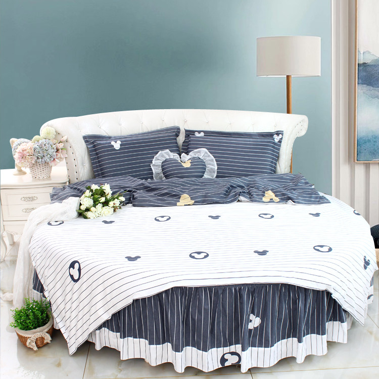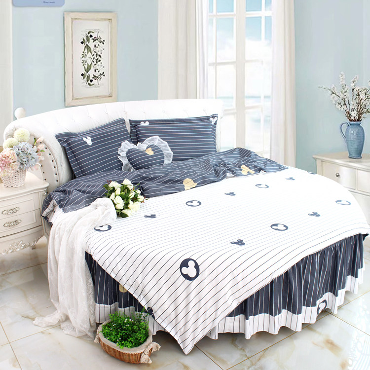 New Night Dance Quilt Round Bed 4-piece Pure Cotton Round Bedsheet Round Quilt Cover Round Bed 2M Blue and White Stripe