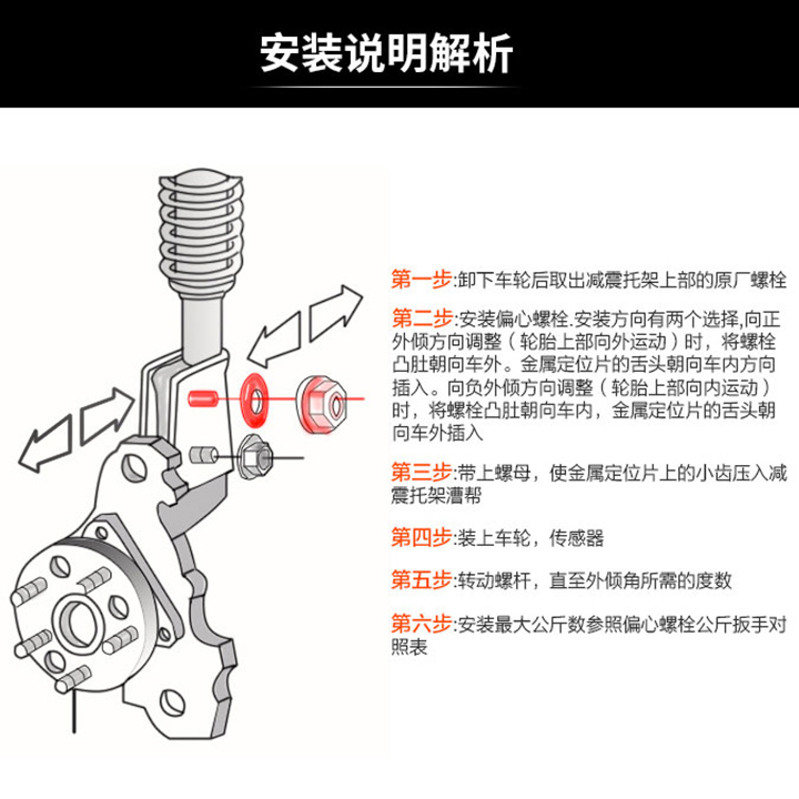 Automotive Outer Dip Angle Adjustment Eccentric Screw Four-wheel Positioning Inner Shock Absorber Bolt Outer Eight Words Shock Absorbing Shock Absorption Retrofit