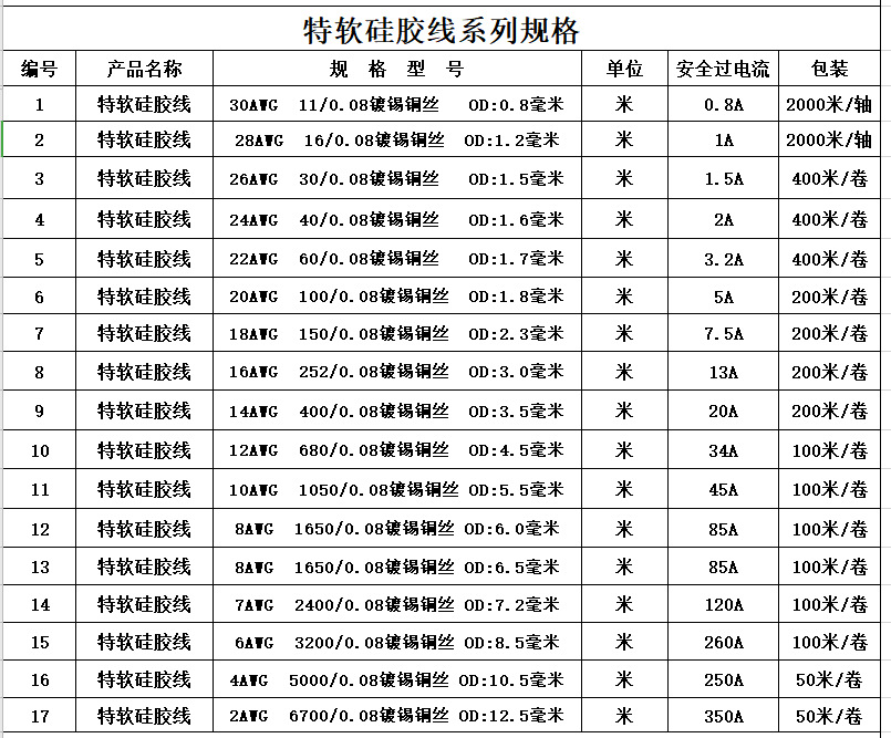 High temperature special silicone wire lithium battery air wire wire navigation wire 22 20 18 16 12 10AWG copper core wire