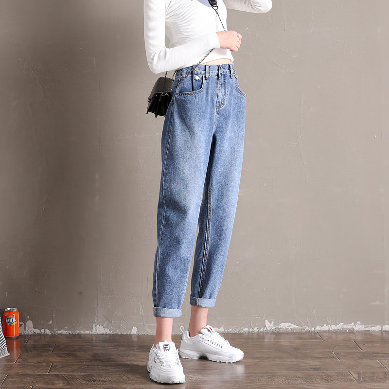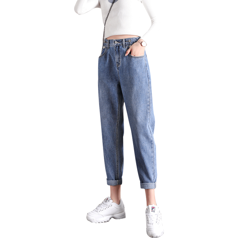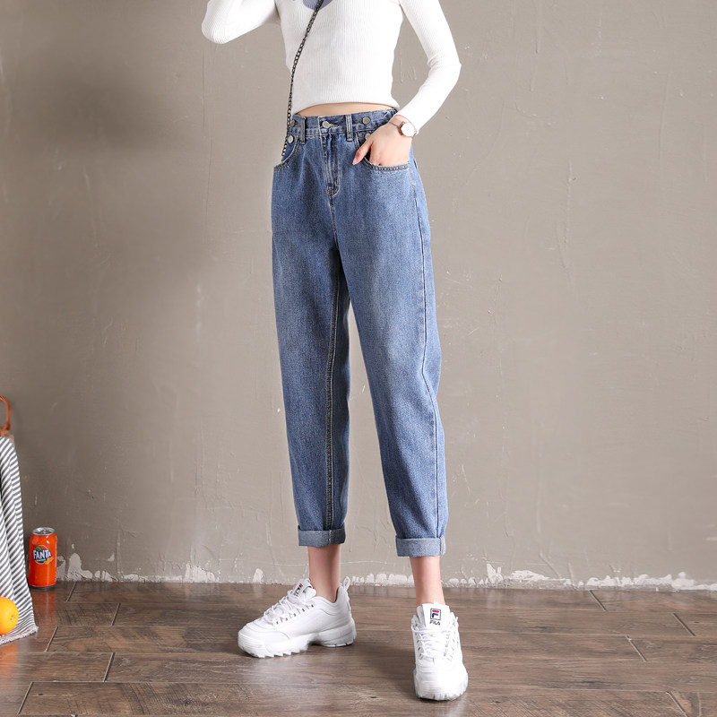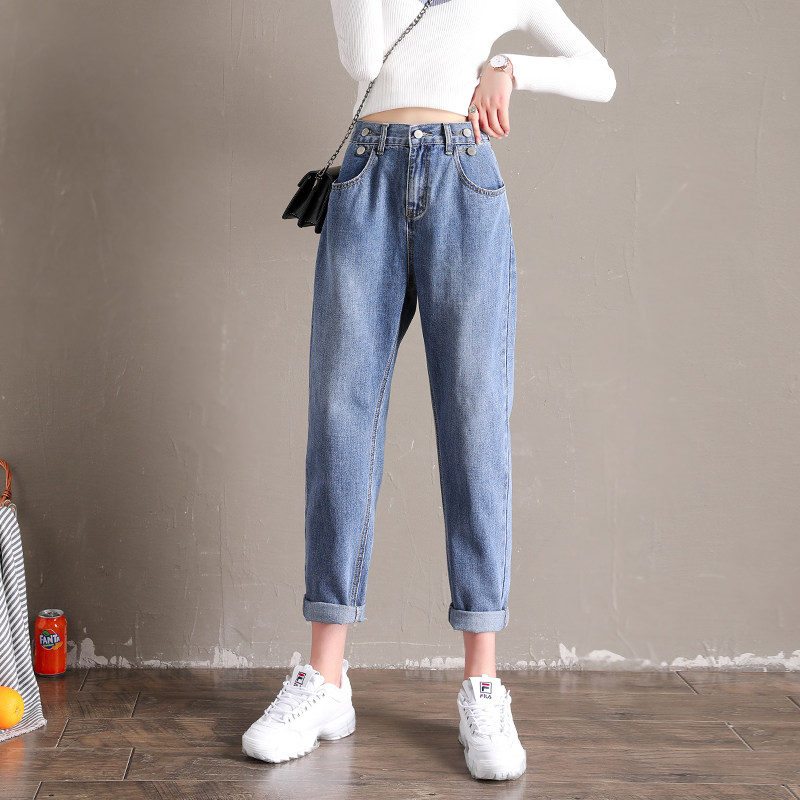 High-waisted jeans women's straight loose spring 2021 new radish pants women's Harun thin nine-point dad pants