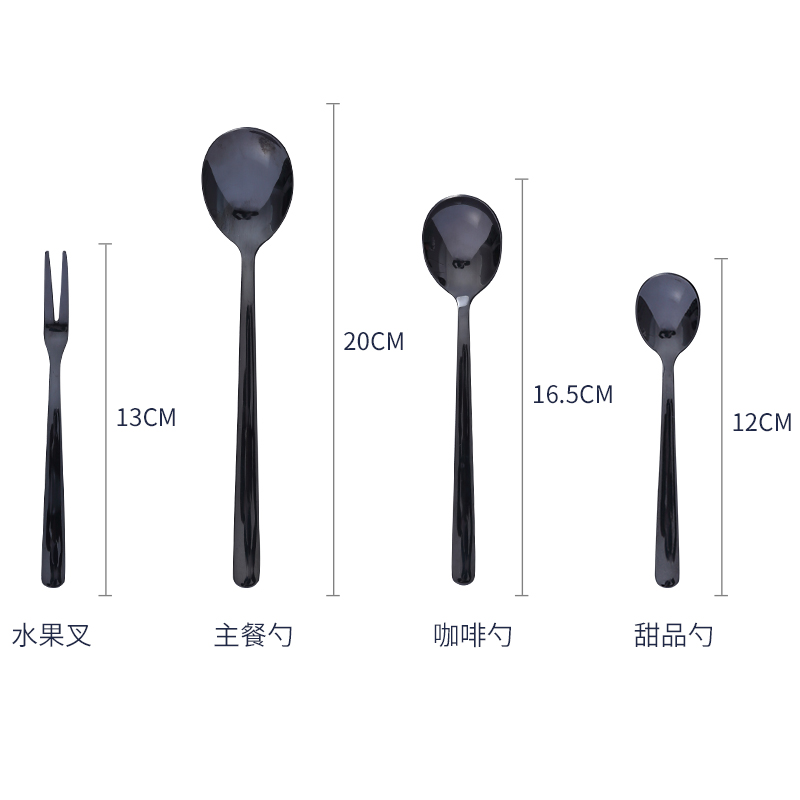 Fruit Fork (elegant black) Fruit Fork (coral powder) Fruit Fork (champagne gold) Fruit Fork (crystal silver) Dessert Spoon (coral powder) Dessert Spoon (champagne gold) Dessert Spoon (elegant black)