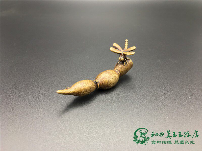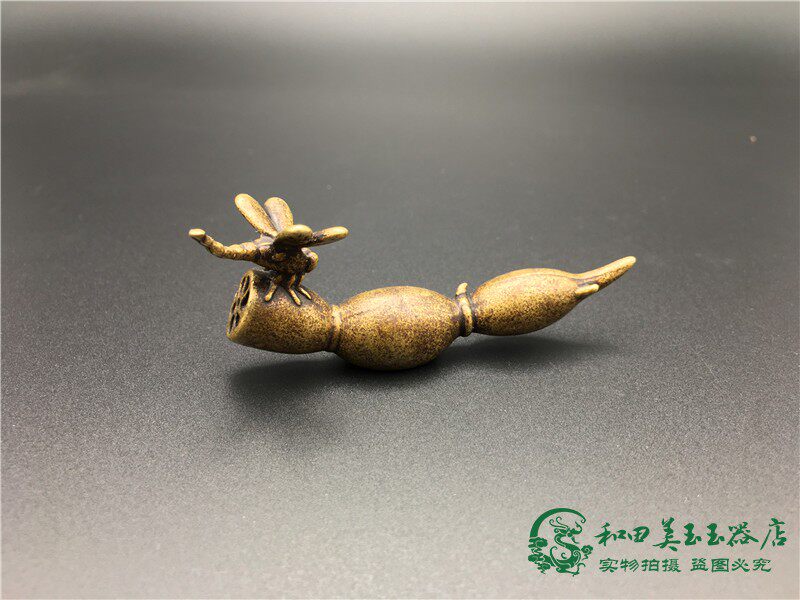 Pure copper lotus root dragonfly tea ceremony micro-carving small ornaments solid copper clad pulp old copper carving pieces antique miscellaneous copper pen holder