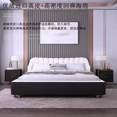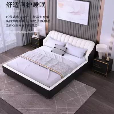 Nordic light luxury leather bed master bedroom double bed 1 8 meters storage wedding bed modern simple 1 5 meters solid wood leather art bed
