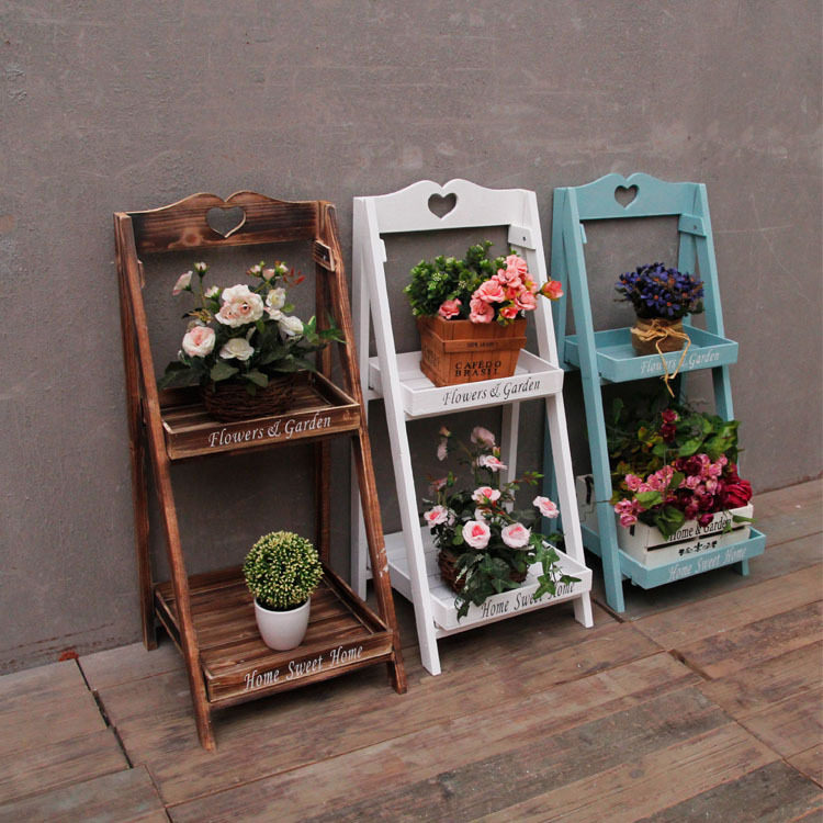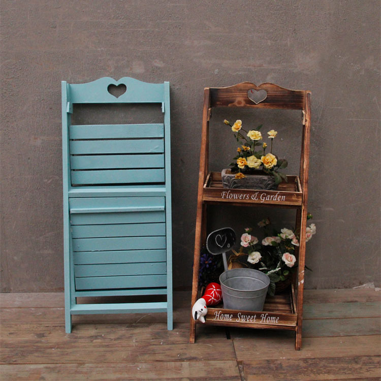American country solid wood multi-layer flower stand ladder folding home balcony flower shop milk tea shop floor-to-ceiling ornament flower table