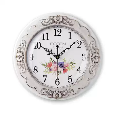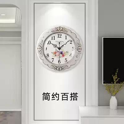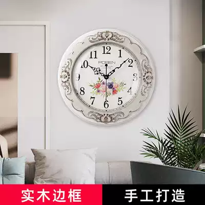 European-style mute wall clock living room home wall watch creative fashion solid wood simple modern decorative quartz clock