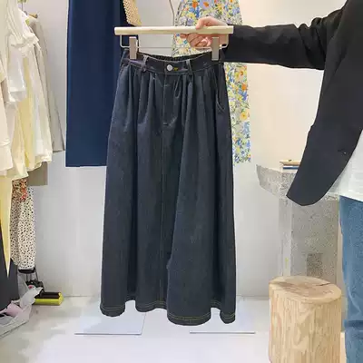 High-waisted denim skirt women's medium long version Korea East Gate 2021 autumn solid color A- line dress temperament denim skirt