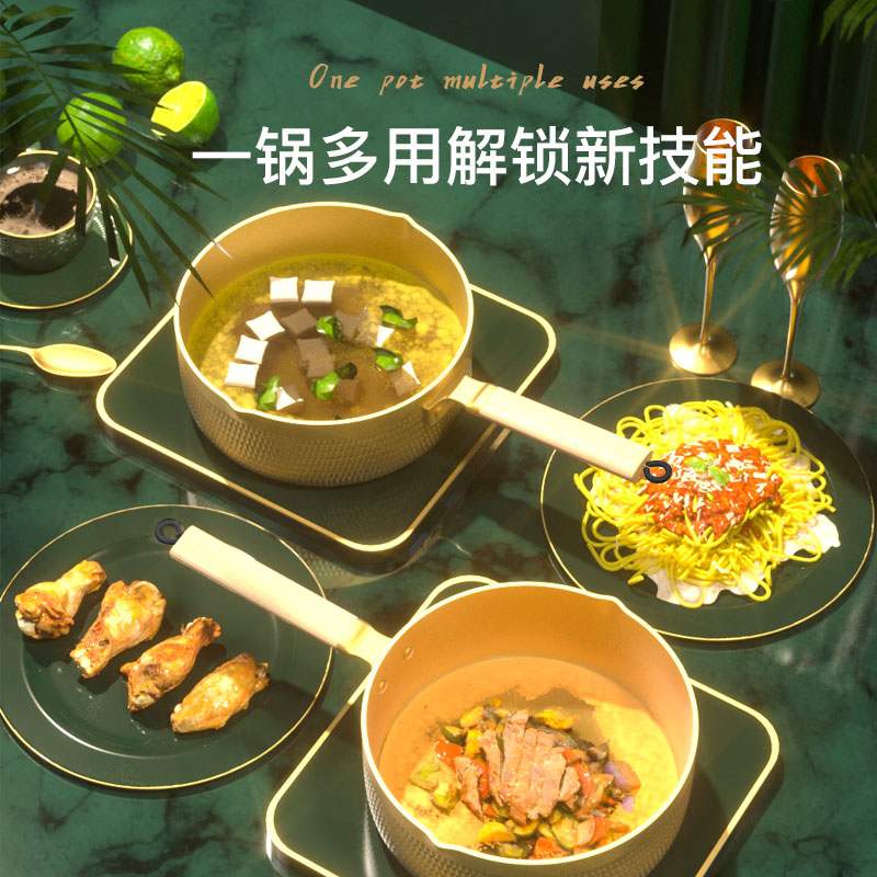Day-Style Snowpan Nonstick Pan Gold Foam Noodle Cooking Noodle Small Pan Cooking Spirolion Powder Special Milk Pan Household Small Stockpot-Taobao