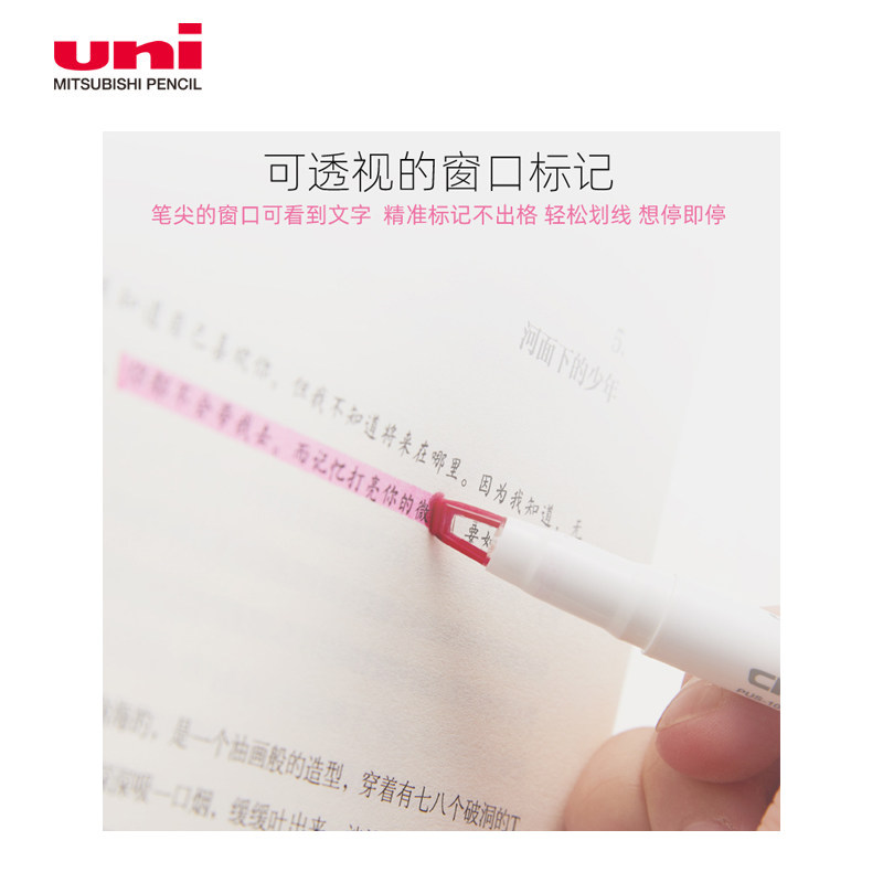 Japan import uni-Mitsubishi fluorescent pen PUS-103T visible window light color double head fluorescent pen students with hand account flat substitute marker pen color suit Mark Pen Flagship Store Co