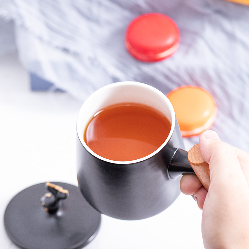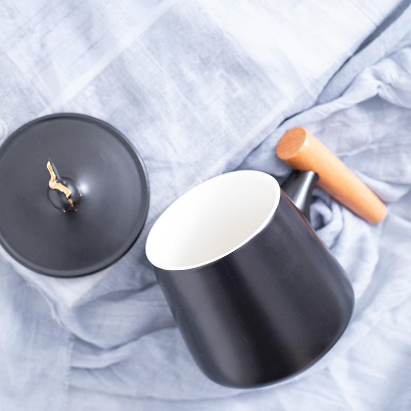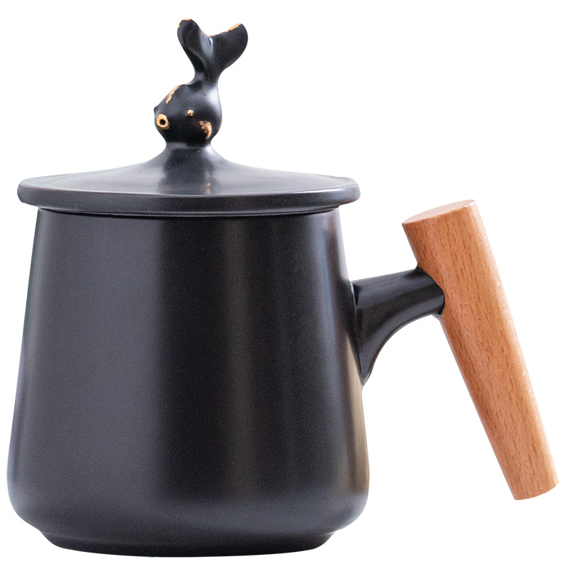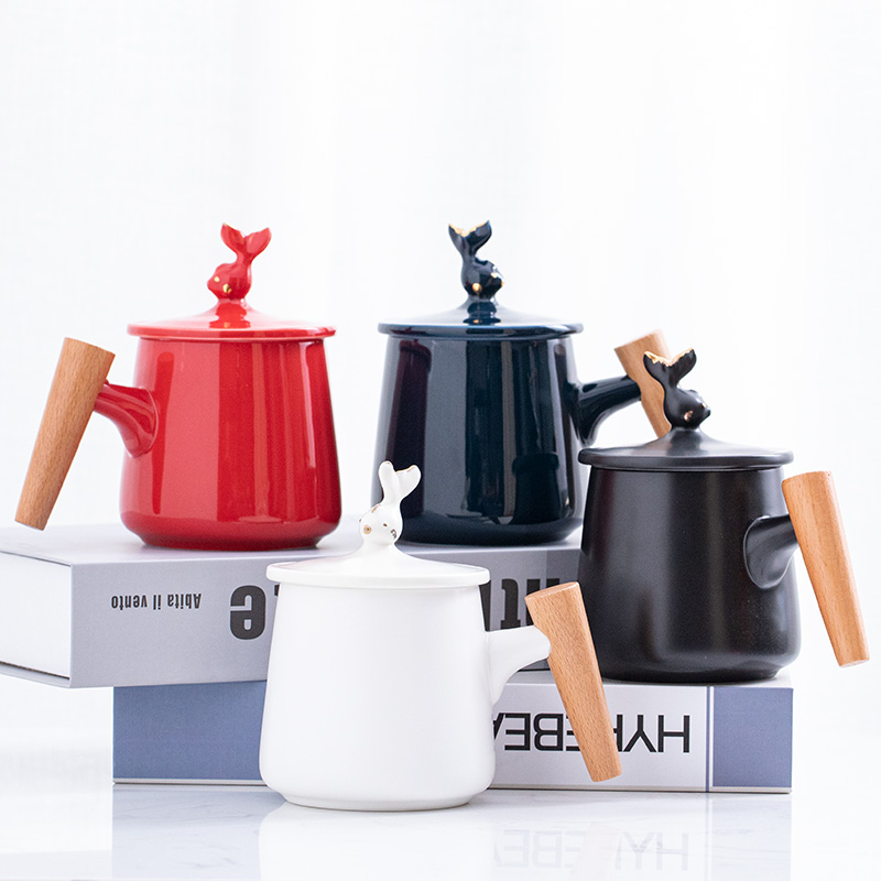 Creative water cup coffee cup ceramic wooden handle Mark couple cup household office with cover spoon cup customization