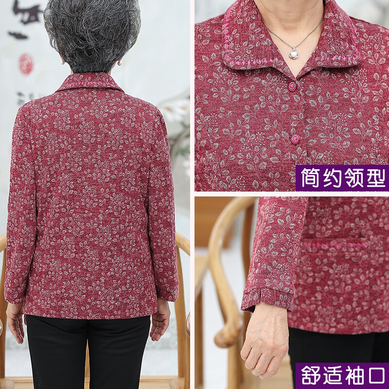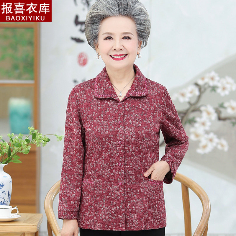 Elderly clothes mother autumn shirt middle-aged and elderly women's grandma thin coat spring and autumn pocket old lady top