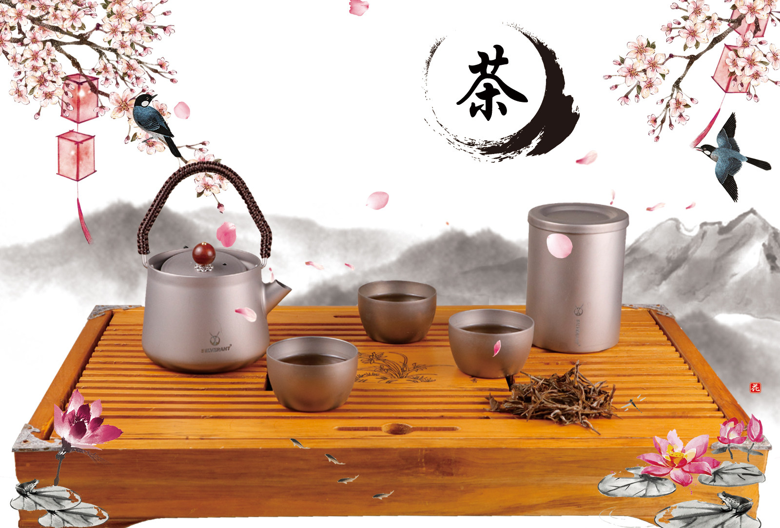 Silver Ant pure titanium mini teapot multiplayer Kung fu teacup outdoor camping camp set portable fall-proof