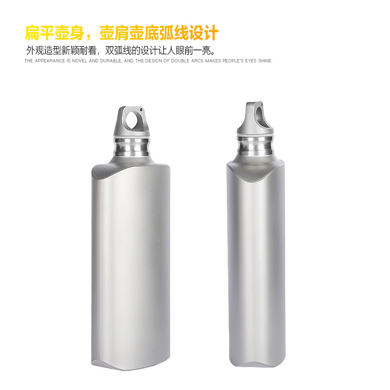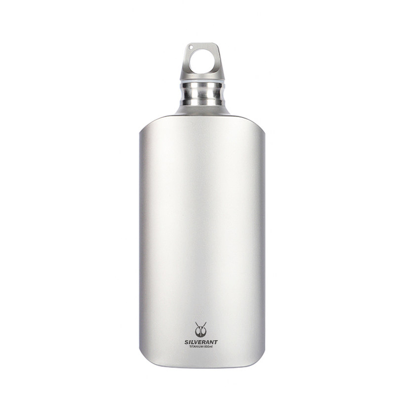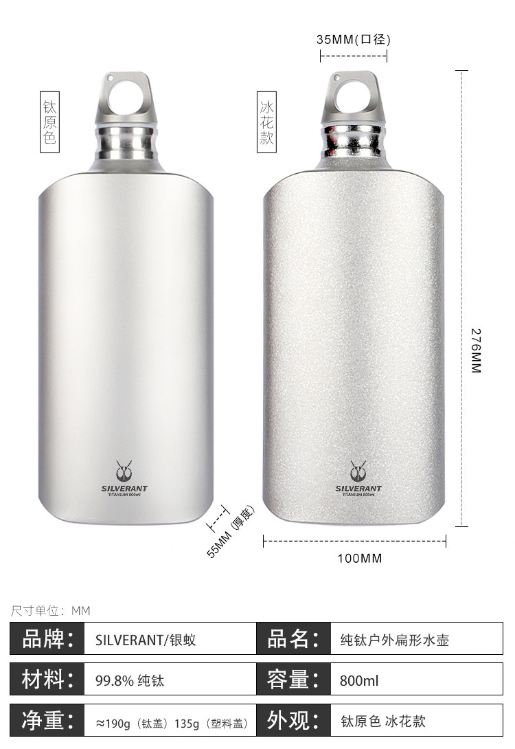 Silver Ant Flat Narrow Mouth Pure Titanium Kettle Water Cup Outdoor Monolayer 800ML Titanium Flat Wine Pot Ultra Light Portable Water Bottle