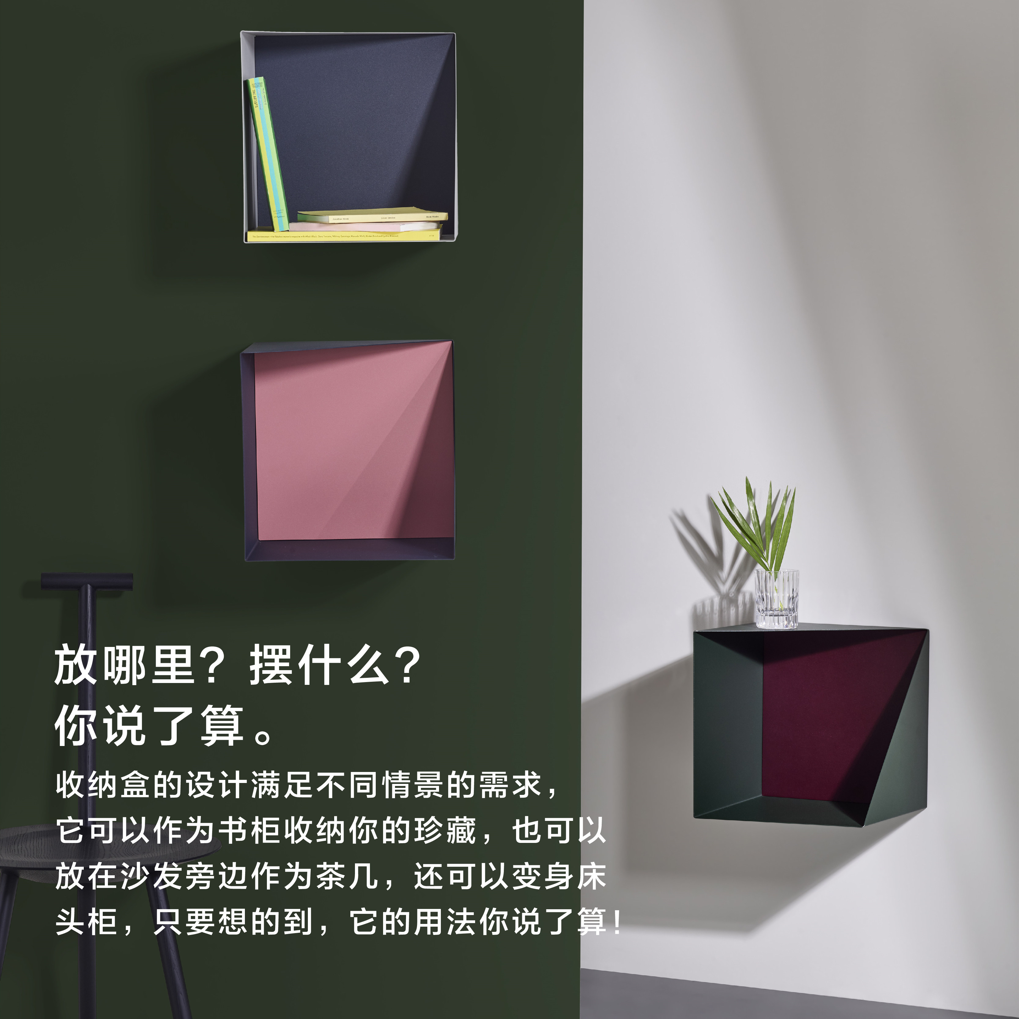 Deep blue 330 x 330 x 330 mm Cigarette Gray 330 x 330 x 330 mm Cedar Green 330 x 330 mm